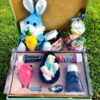 Nossa caixa de Páscoa vem com um ovo de chocolate delicioso e recheado com muitas guloseimas, além de um coelhinho azul de pelúcia para abraçar e brincar.