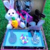 Nossa caixa de Páscoa vem com um ovo de chocolate delicioso com muitas guloseimas, além de um coelhinho azul de pelúcia para abraçar e brincar.