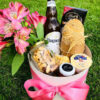 Com duas garrafas de cerveja de qualidade e alguns itens de comida escolhidos com cuidado, esta cesta é uma ótima opção para uma curtir o final de semana ou para celebrar uma ocasião especial.
